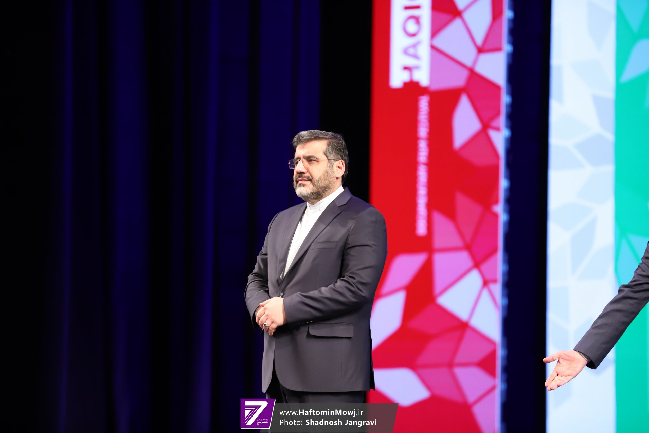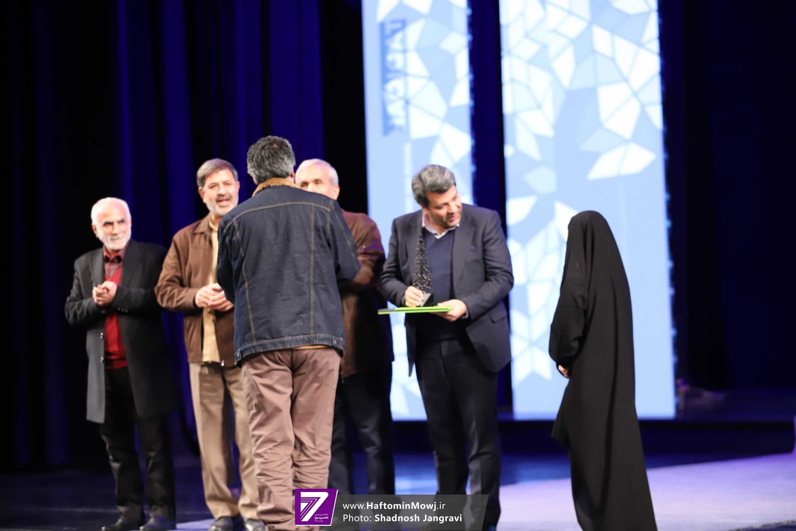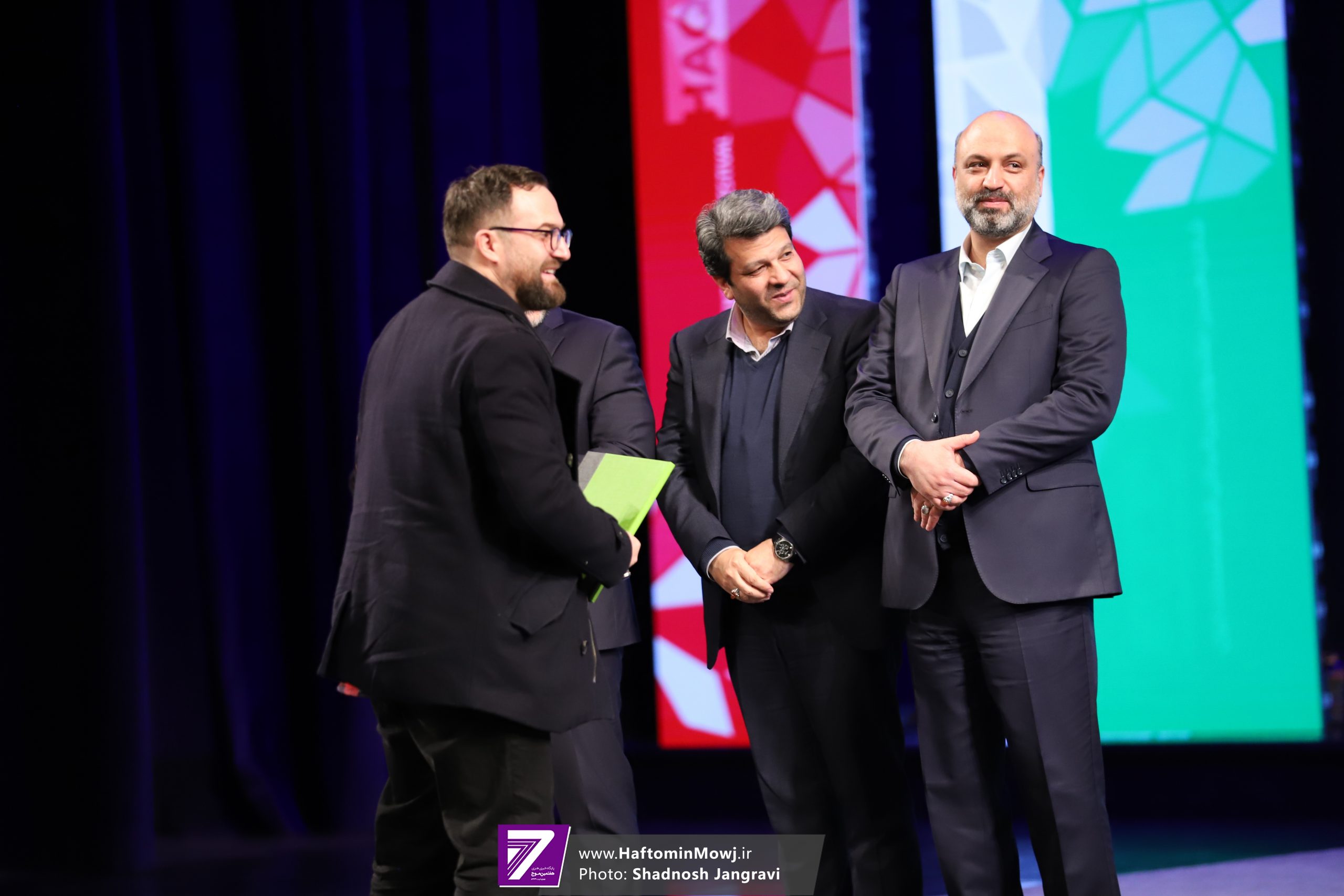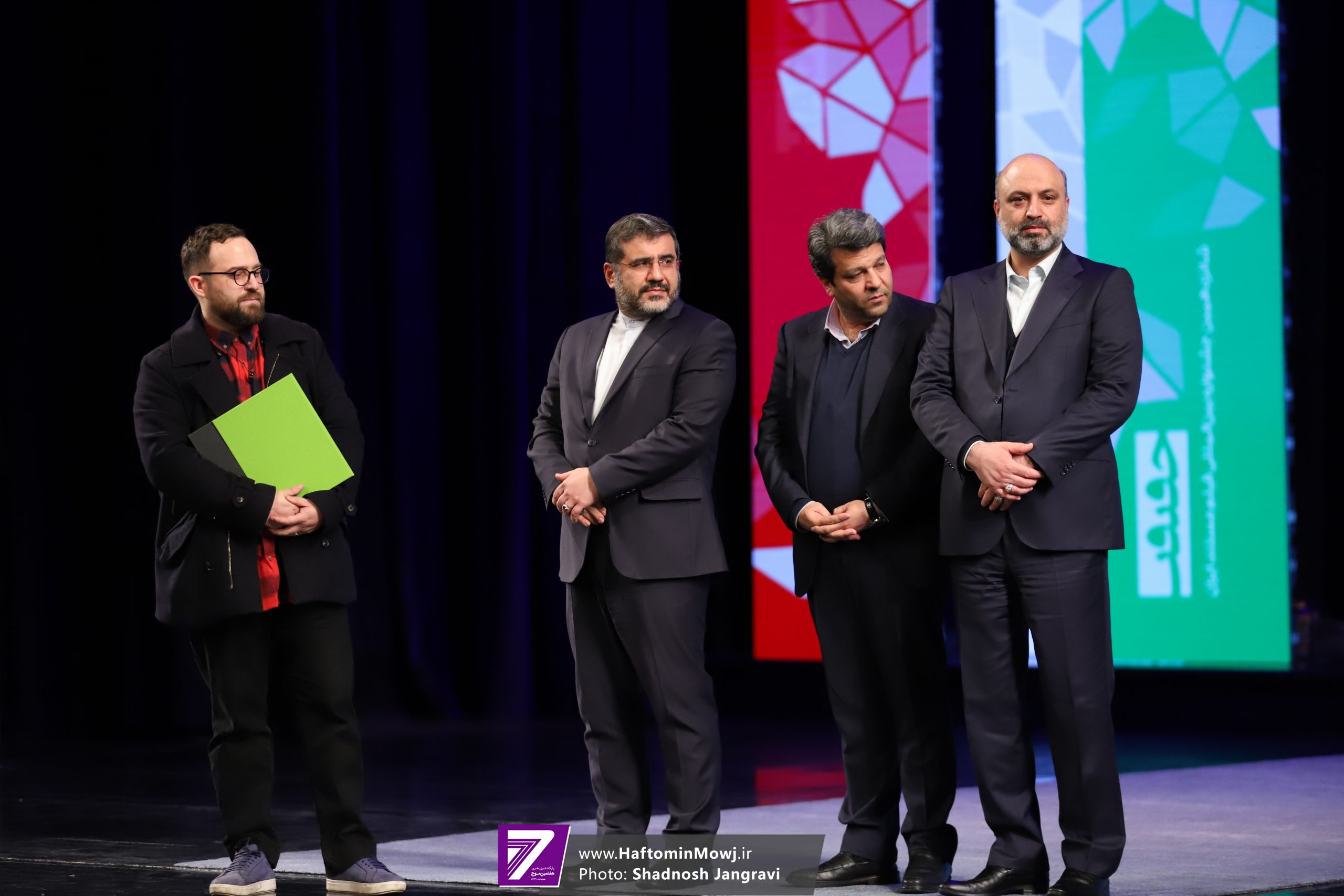 محمد خزاعی، رئیس سازمان سینمایی نیز برای اهدای جایزه این بخش به روی صحنه آمد.