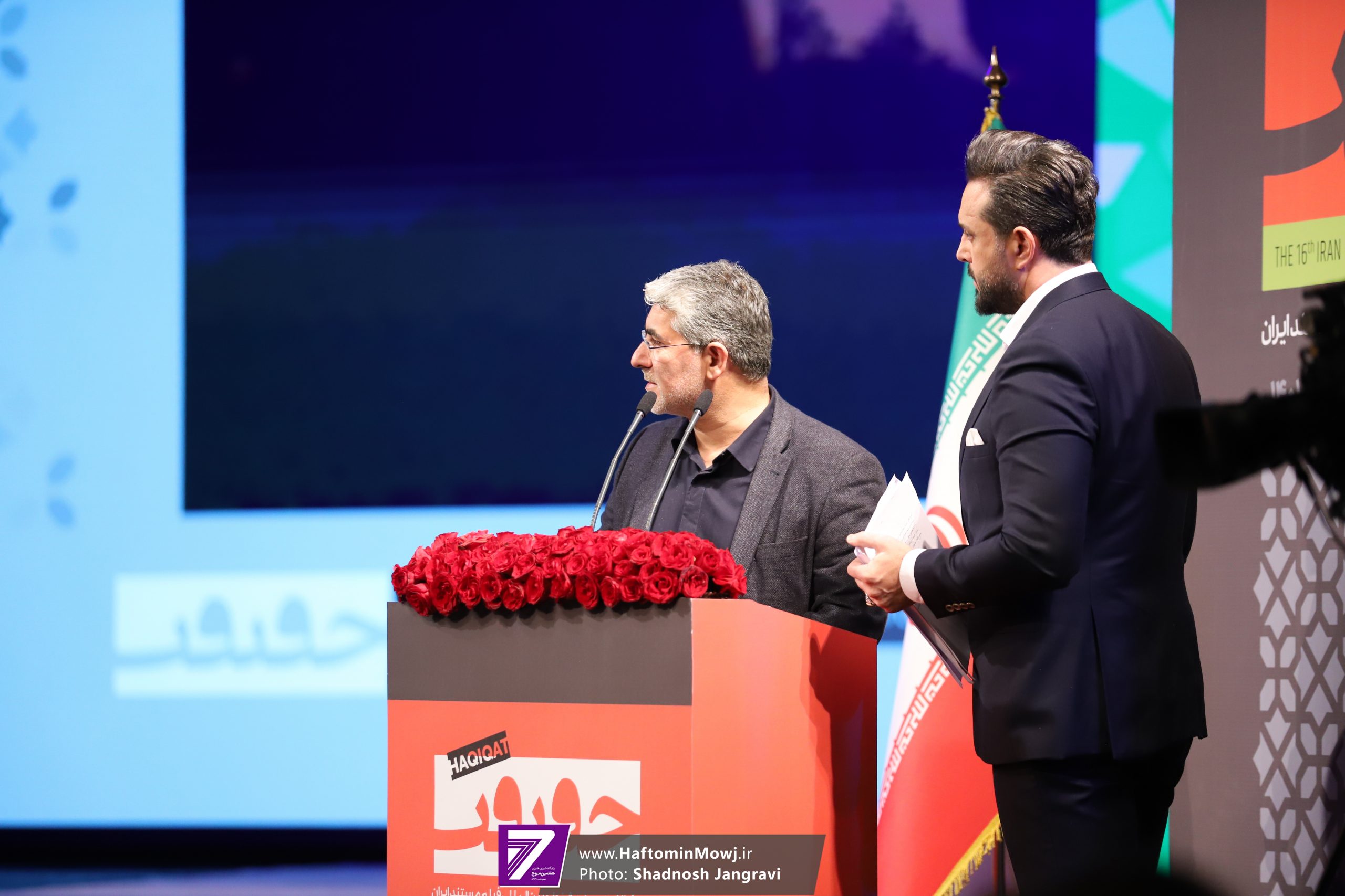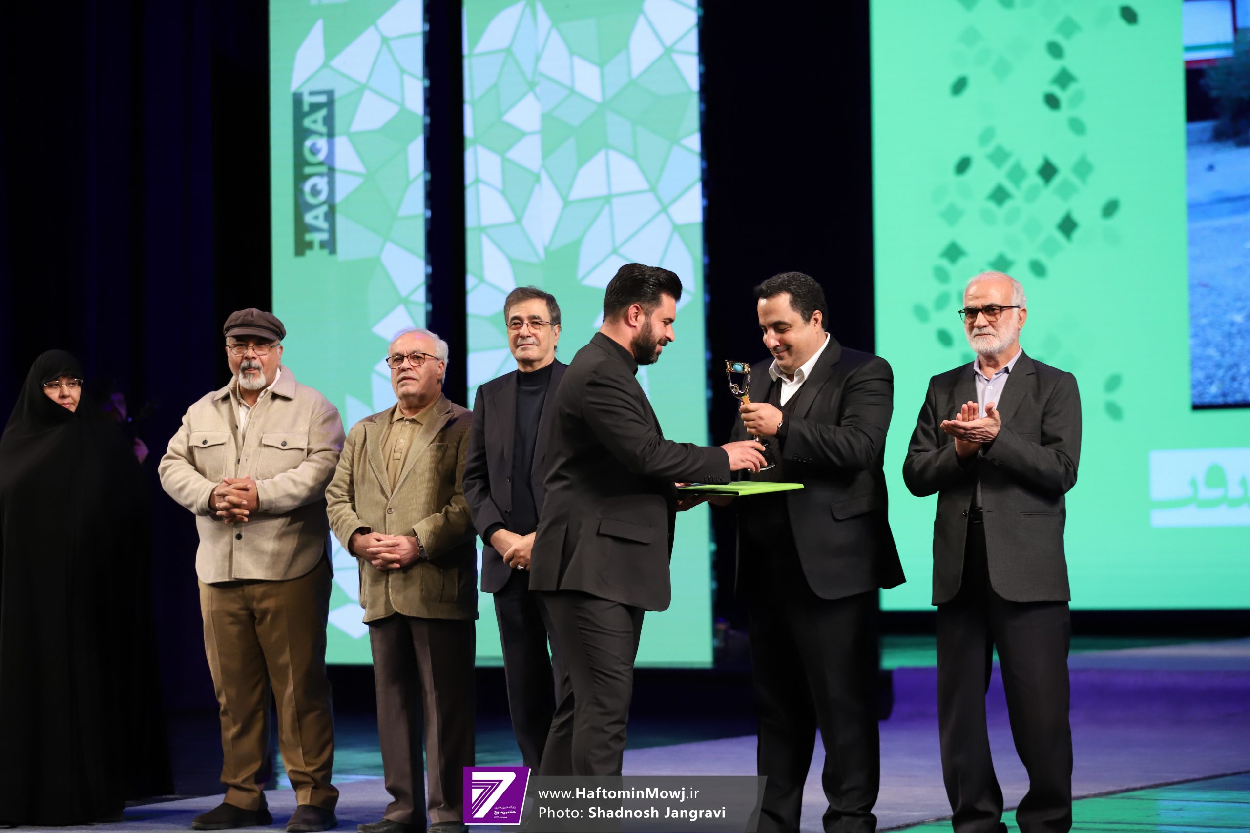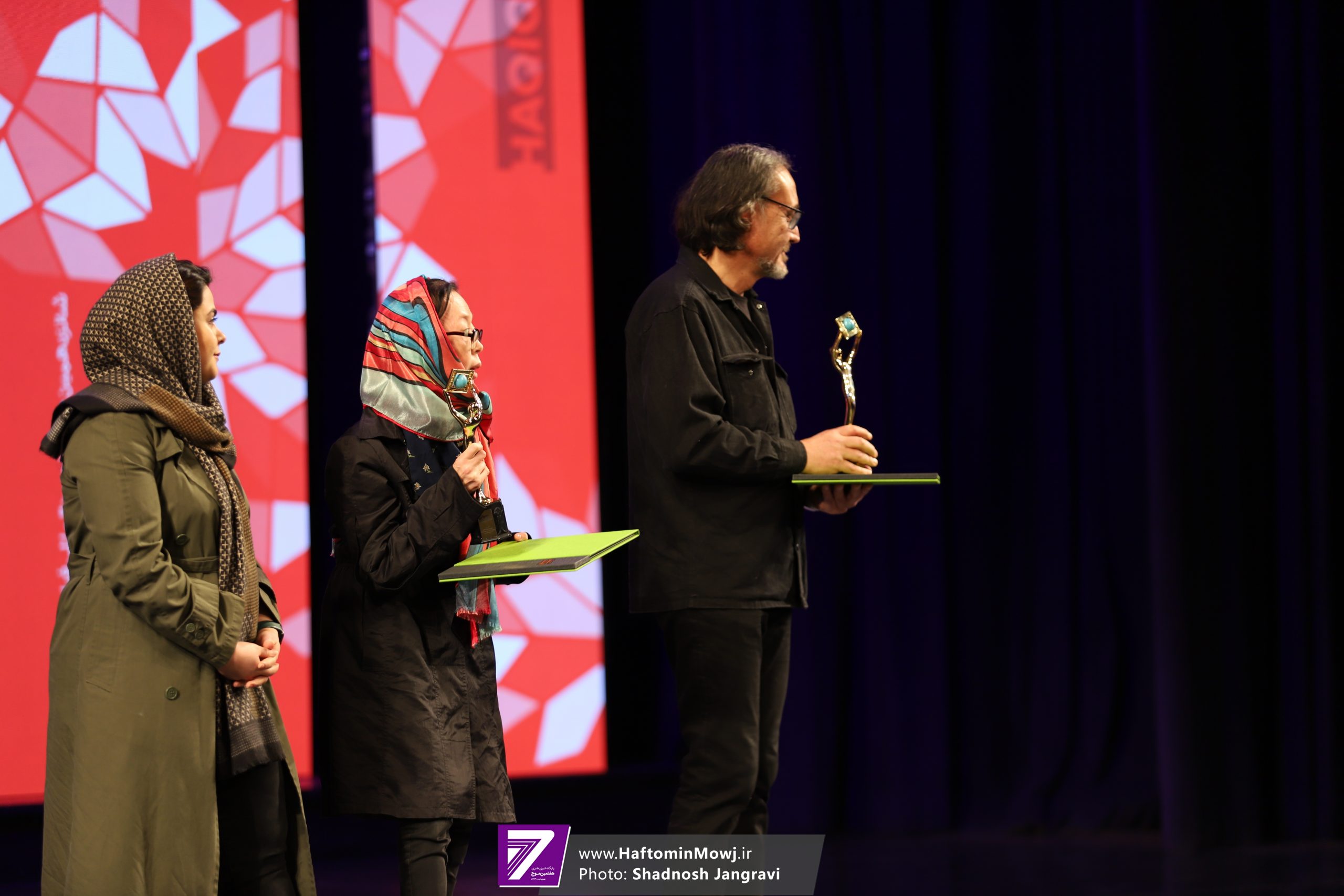 محمد خزاعی، رئیس سازمان سینمایی نیز برای اهدای جایزه این بخش به روی صحنه آمد.