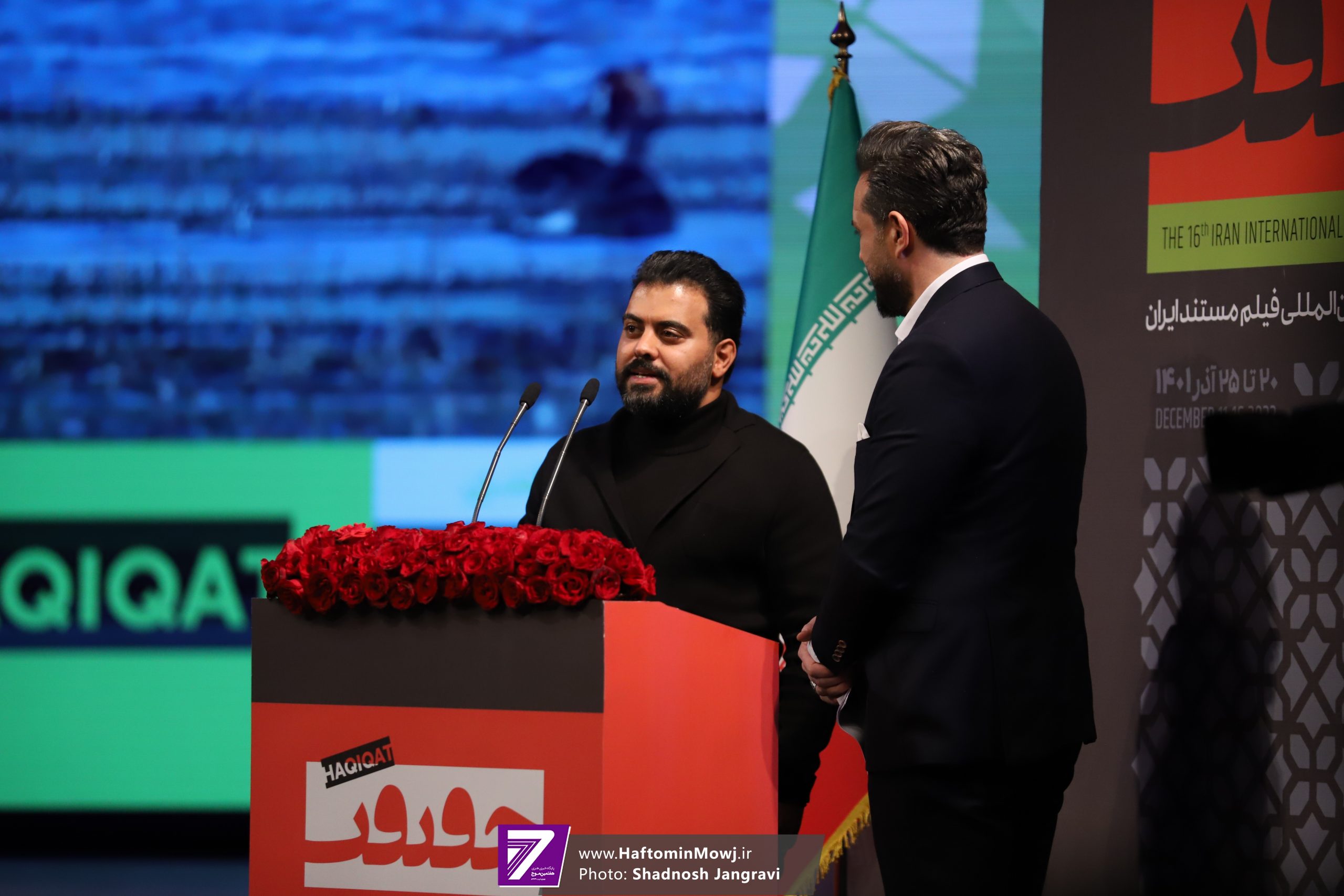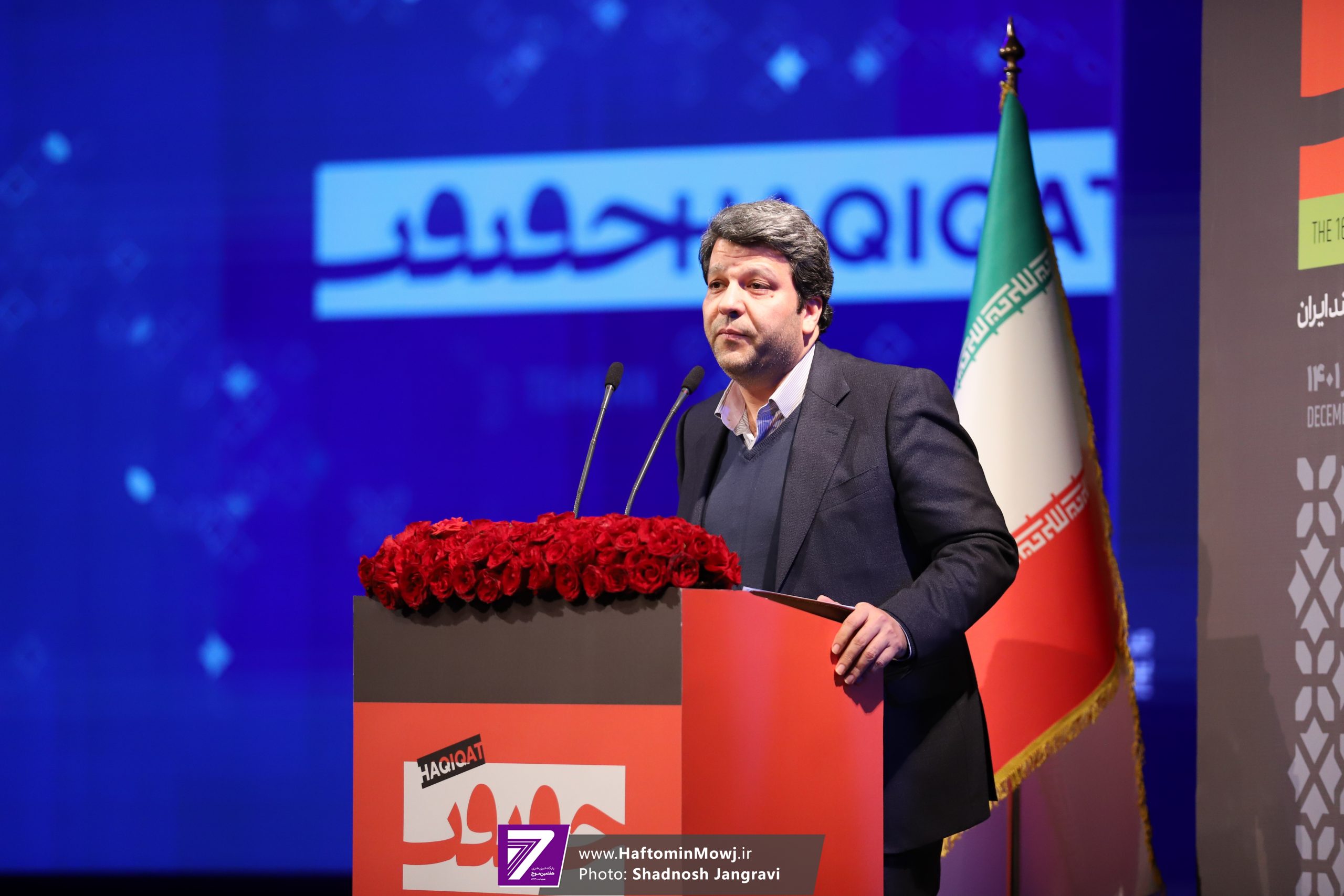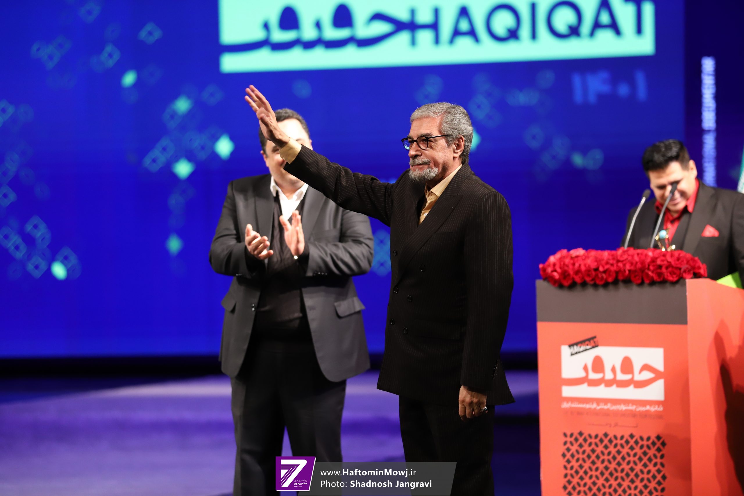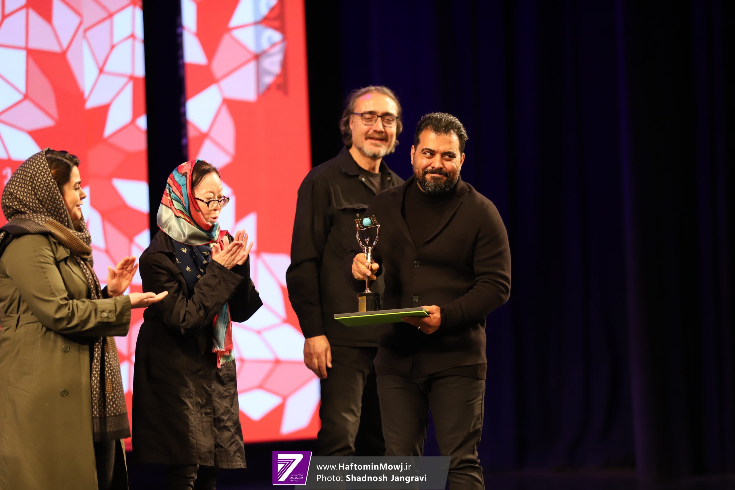 محمد خزاعی، رئیس سازمان سینمایی نیز برای اهدای جایزه این بخش به روی صحنه آمد.
