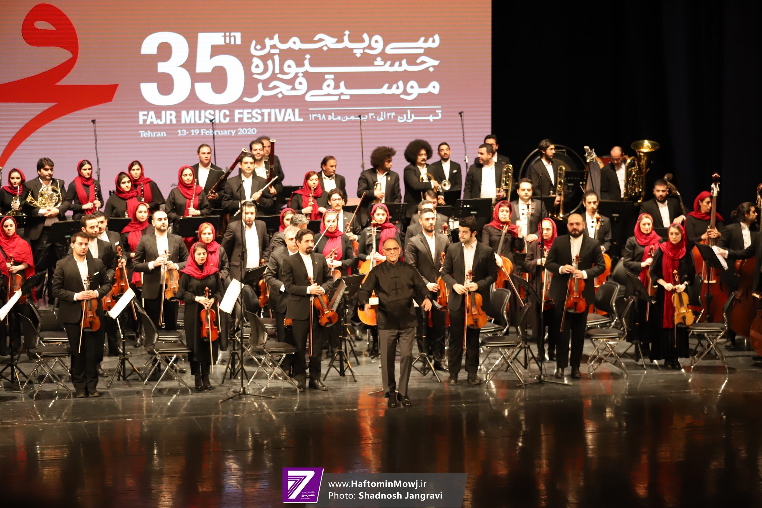 به گزارش ستاد خبری سی و پنجمین جشنواره موسیقی فجر، این بار زنگ های تالار برای آغاز مراسم اختتامیه این جشنواره به صدا درآمد. مخاطبان بر صندلی های خود جای گرفتند و پس از آیاتی از کلام الله مجید، کلیپ مخصوص سپهبد شهید قاسم سلیمانی پخش شد. پس از آن ارکستر به رهبری نصیر حیدریان اجرای خود را با سرود جمهوری اسلامی ایران در حالی که جمعیت ایستاده بودند، آغاز کرد. «سرود پیروزی» با آهنگسازی همایون رحیمیان، قطعه «۱۷۶» به یاد جانباختگان هواپیمای اوکراینی با آهنگسازی بهزاد عبدی و قطعه کلاسیک با آهنگسازی آنتونین دورژاک قطعات اجرایی در این بخش بود. ارکستر در انتها مورد تشویق حضار قرار گرفت.