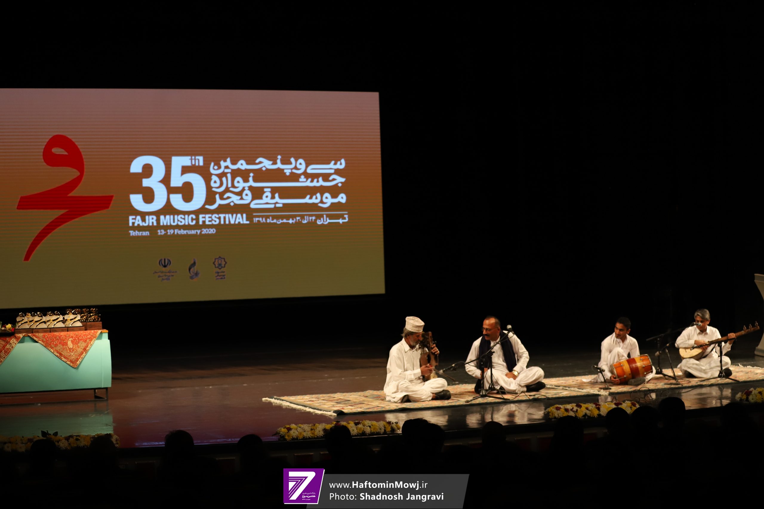 سپس تیزر مخصوص جشنواره پخش شد. سید عباس سجادی به عنوان مجری این برنامه روی صحنه حاضر شد و به حضار خیر مقدم گفت. در ادامه آیین اختتامیه سی و پنجمین جشنواره موسیقی فجر توضیحاتی درباره اقدامات جشنواره در خصوص سیل سیستان و بلوچستان از سوی مجری برنامه ارائه داده شد. بعد از آن گروه «گلداز» سیستان و بلوچستان روی صحنه رفتند. اجرای شاد گروه «گلداز» از سیستان و بلوچستان با دست زدن مرتب حاضران در تالار وحدت برگزار شد. گل محمد بلوچی خواننده، خداداد شکل زهی، نوازنده غیچک، رضوان بادروزه، نوازنده دهلک و نصیر احد ملازهی نوازنده تنبورک از اعضای این گروه بودند.