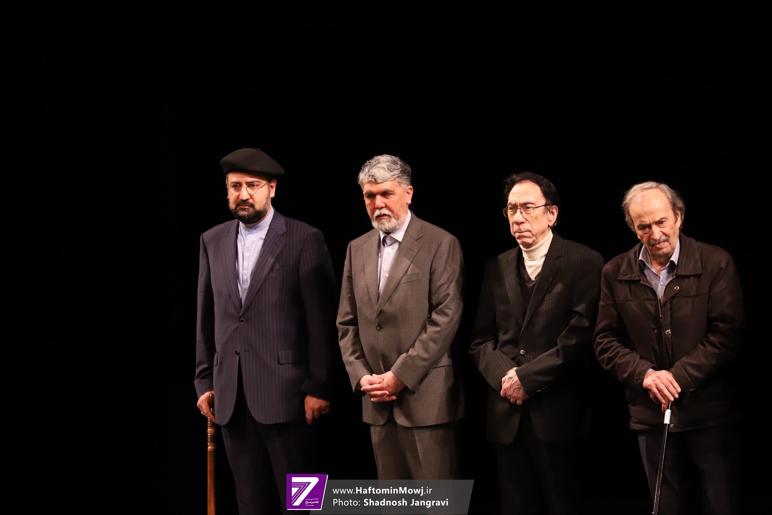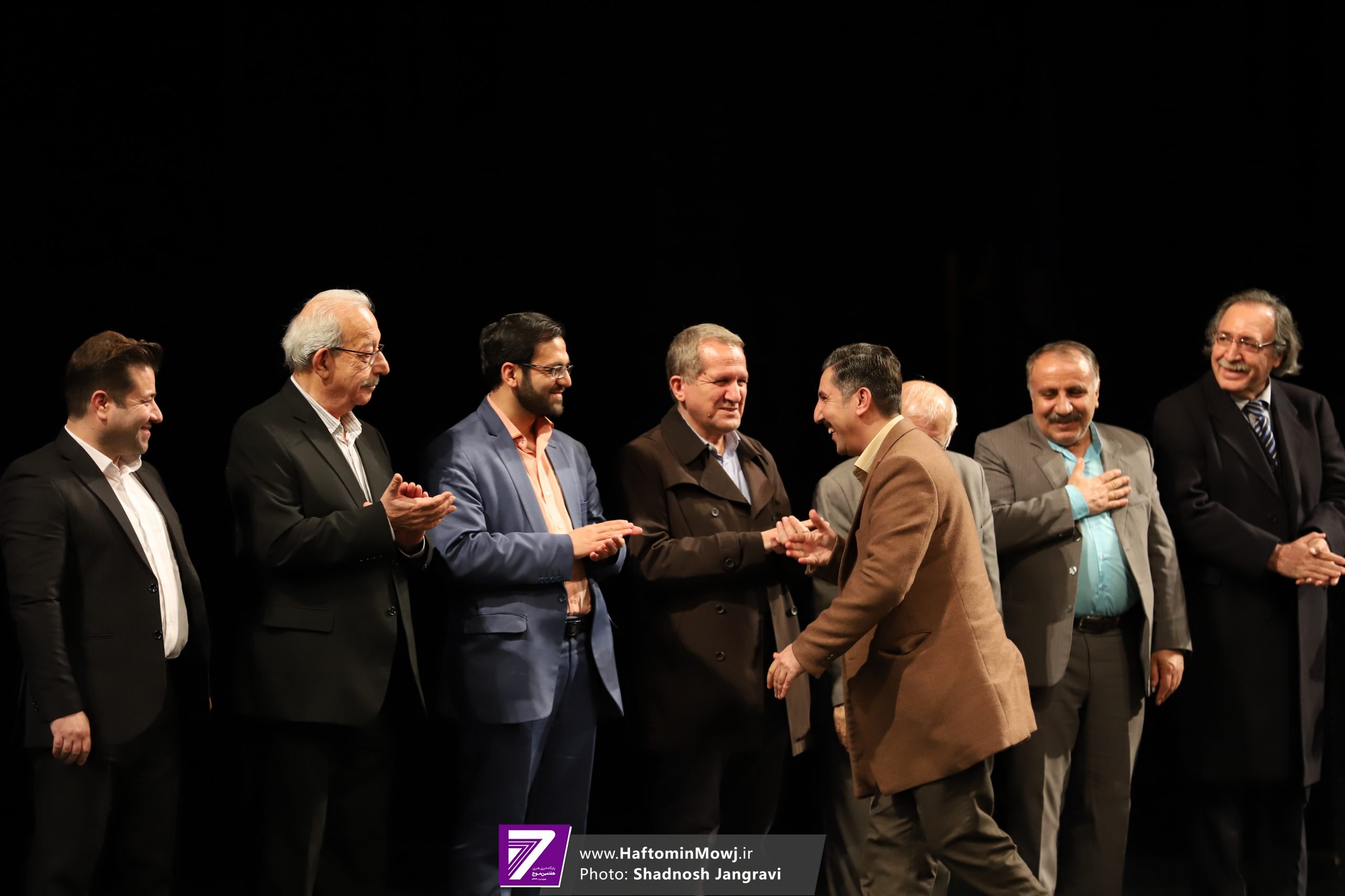 مجری از پروین صالح همسر استاد هوشنگ ظریف درخواست کرد که به صحنه بیاید اما به دلیل اینکه او نتوانسته بود در مراسم حاضر شود، از خدیر رفعتی خواست تا به نیابت از پروین صالح تندیس هوشنگ ظریف را دریافت کند. هنرمند بعدی افلیا پرتو بود که به همراه همسرش روی صحنه رفت و تجلیل شد. عاشیق حسن اسکندری هنرمندی بعدی بود که با لباس آذری به صحنه رفت و تجلیل شد. آخرین هنرمندی که مورد تقدیر قرار گرفت، نادر مشایخی بود که در بخش بزرگداشت هنرمندان به همراه حمید قبادی روی صحنه رفت.