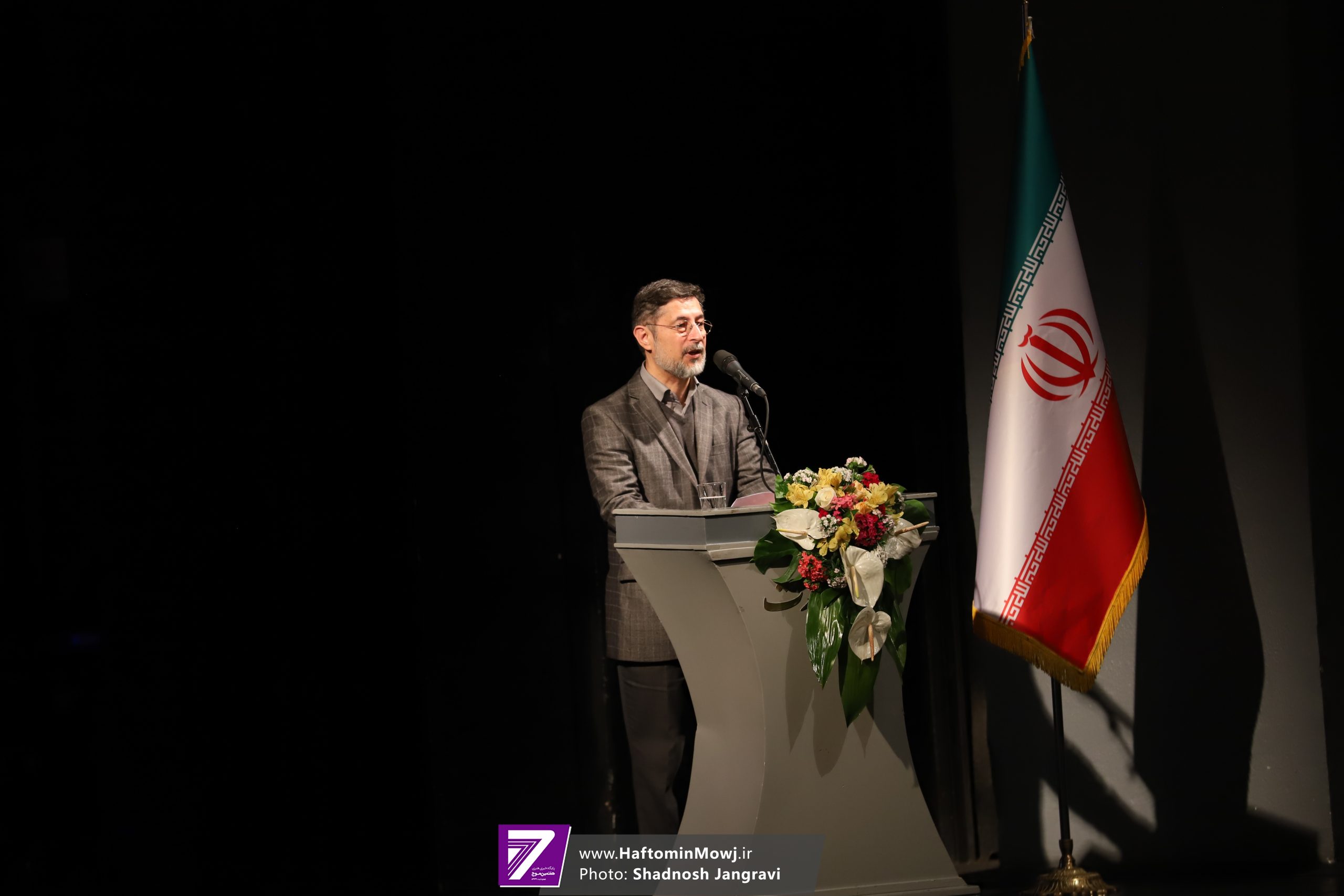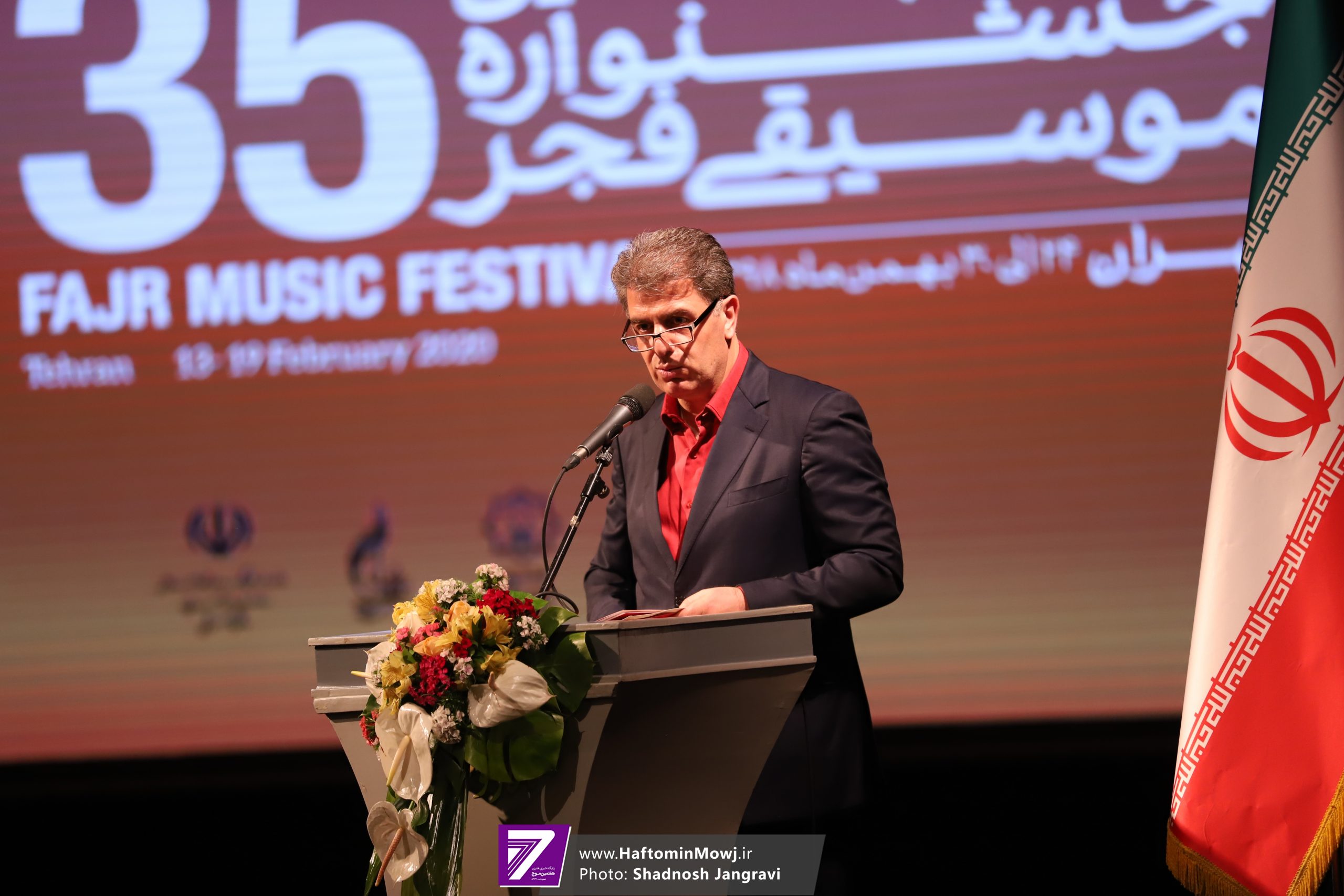 جناب آقای دکتر سید عباس صالحی، وزیر محترم فرهنگ و ارشاد اسلامی روی صحنه دعوت شد و چنین سخنرانی خود را آغاز کرد: من قصد سخنرانی ندارم و فقط چند کلمهای صحبت میکنم. موسیقی در همه جوامع انسانی دارای جایگاه خاصی است و به عنوان سند هویت ملتها، نقش های بسیاری از جمله لذت متای انسان و نقشی در زبان ارتباطی کلامی ملت ها دارد. اما نقش موسیقی برای ما ایرانیان علاوه بر نقش هایی که برای ملت ها دارد، نقش های دیگری نیز دارد. از یکسو ایران عزیز به رنگین کمان اقوام شناخته می شود. بخش قابل توجهی از این خط و رنگین کمان آوایی ایران با زبان موسیقی همراه است، یعنی هم زبان ارتباط و هم زبان تنوع ملت ایران است و ما با این نگاه موسیقی را در تاریخ چند هزار ساله خودمان می شناسیم.