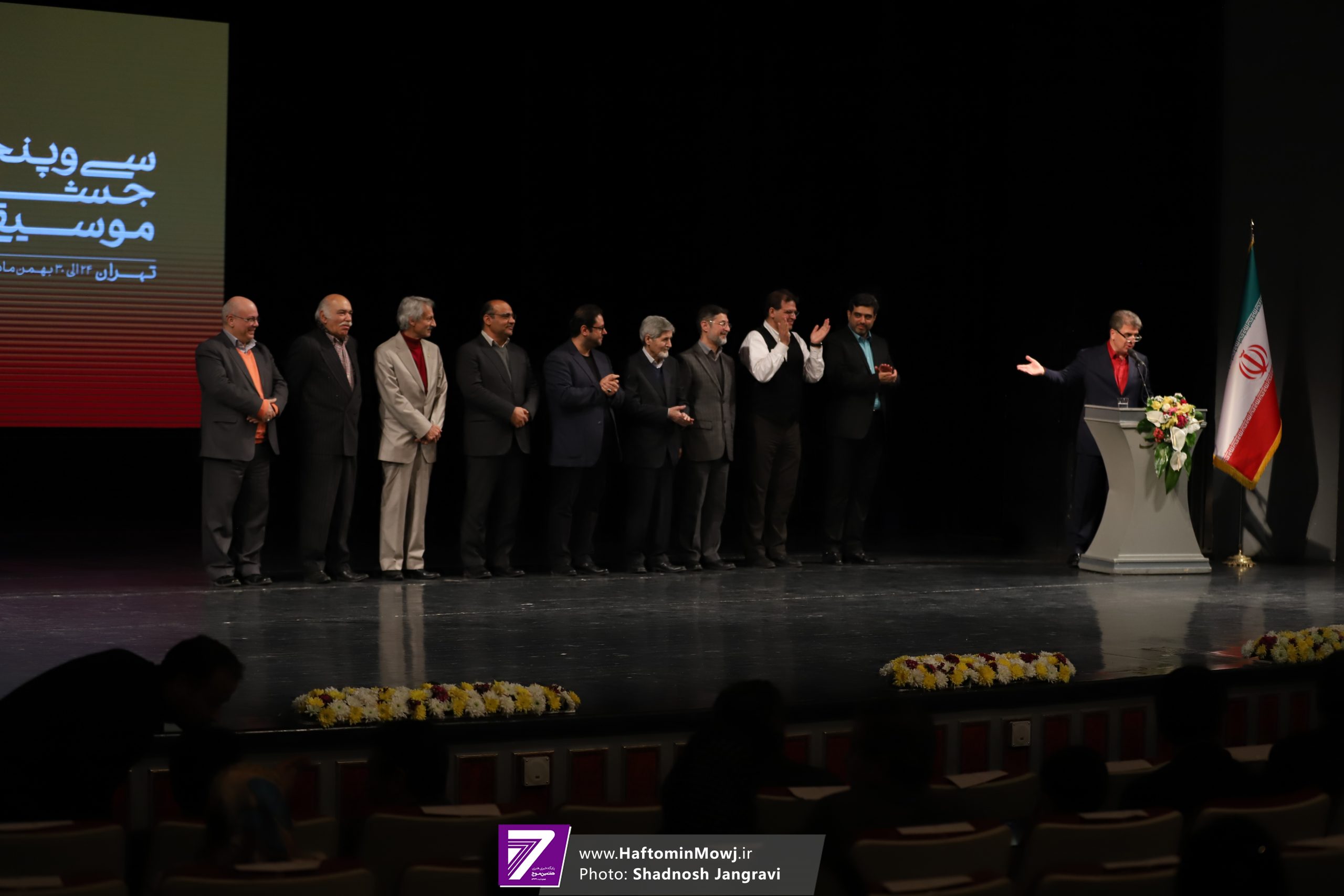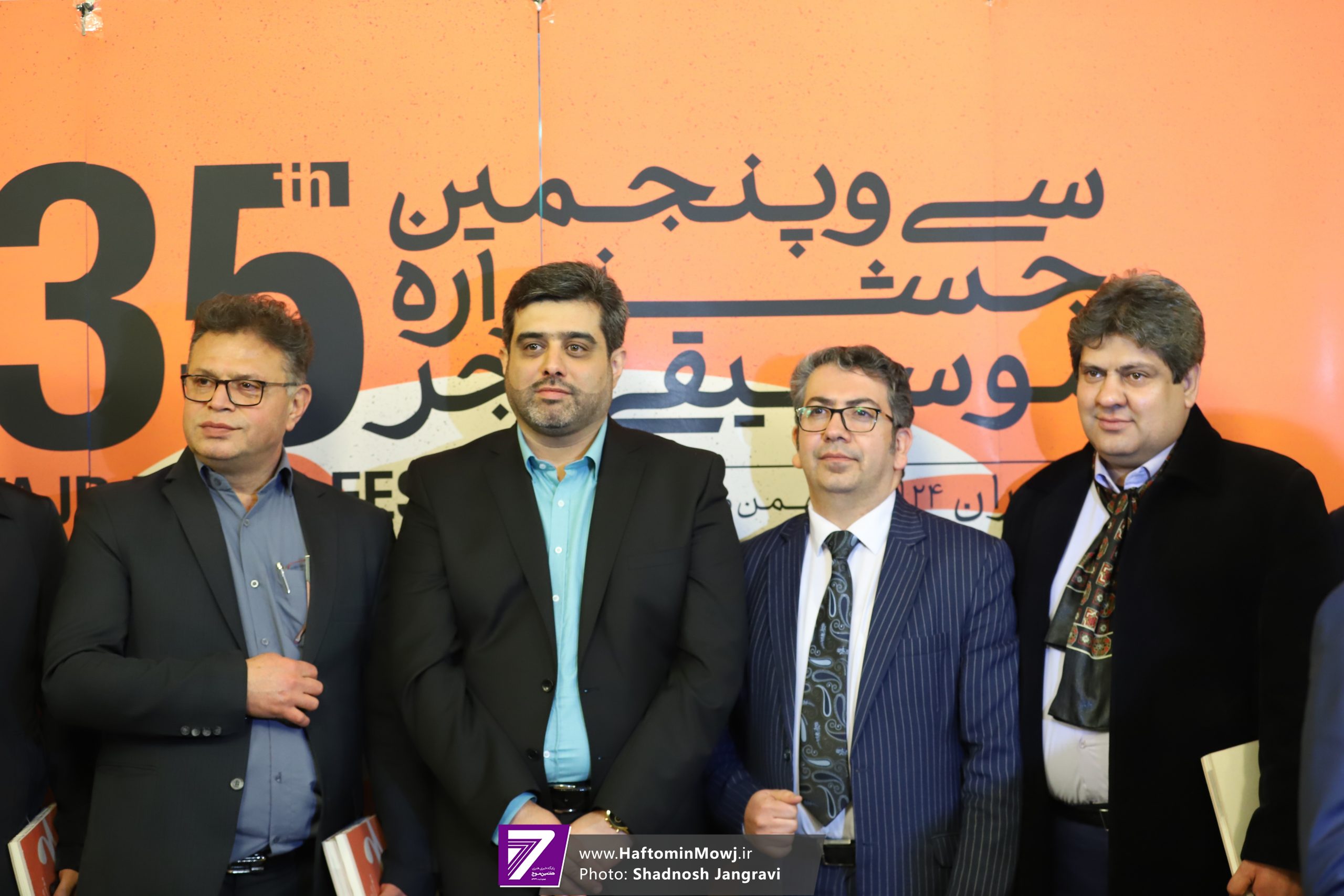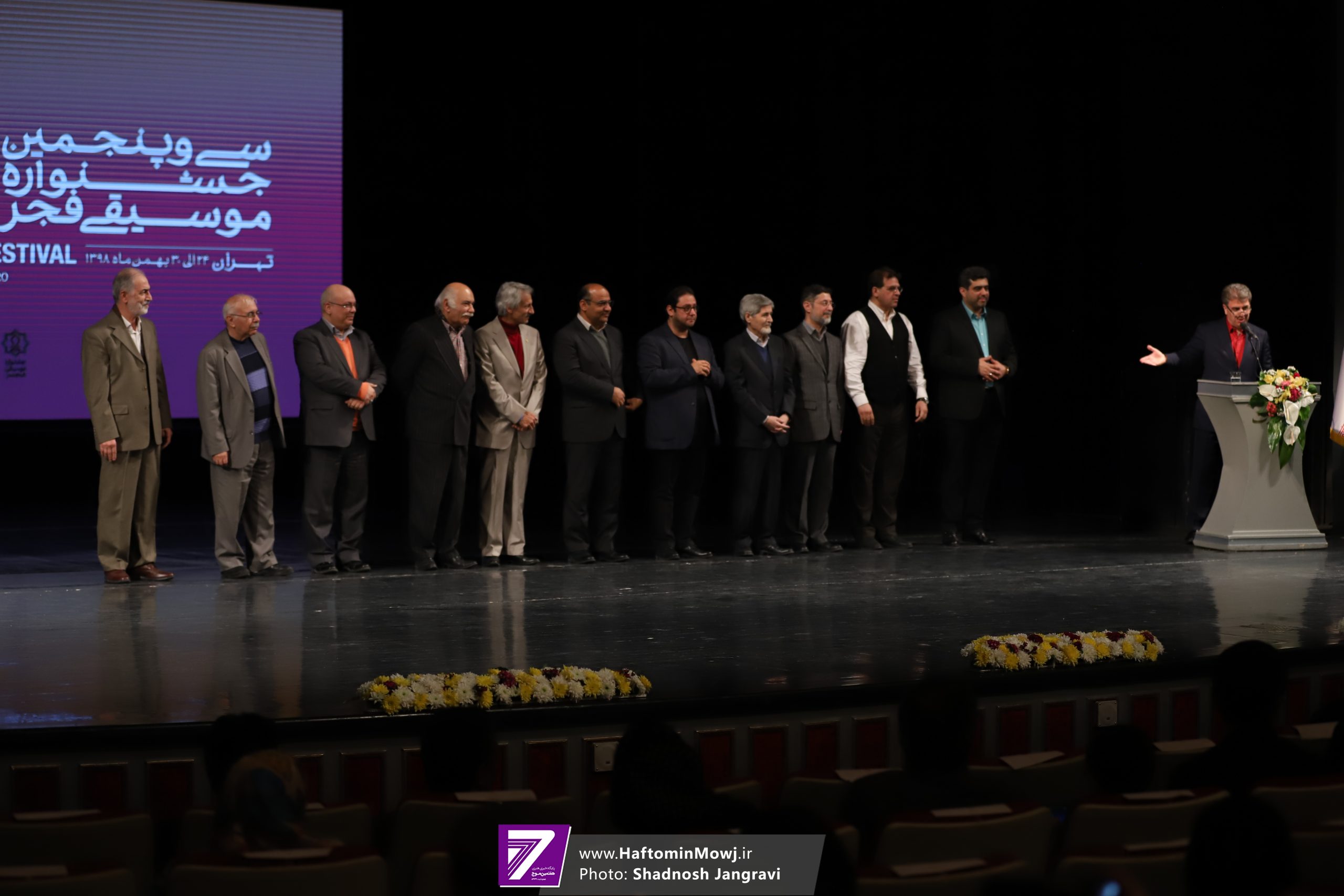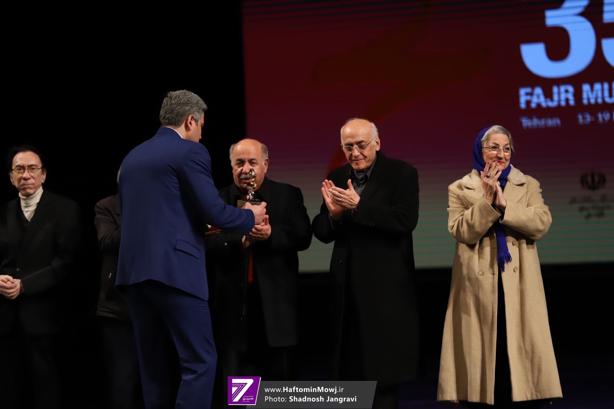 تصاویری از بزرگان موسیقی ایران که شامل هوشنگ ظریف، افلیا پرتو، نادر مشایخی و عاشیق حسن اسکندری بود، در کلیپ بزرگداشت، پخش شد. در طول اجرای سی و پنجمین جشنواره موسیقی فجر، چهار ویدئو مستند از چهار هنرمند بزرگ ایران اکران شد. در آیین اختتامیه مختصری از این چهار ویدئو برای حاضران در تالار وحدت به نمایش درآمد تا از این هنرمندان تجلیل شود. بعد از آن مجری از وزیر محترم فرهنگ و ارشاد اسلامی، جناب آقای دکتر سید عباس صالحی، جناب آقای محمد اله یاری و شاهین فرهت برای اهدا هدایا دعوت کرد. در این بخش از استاد هوشنگ ظریف، استاد افلیا پرتو، استاد حسن اسکندری و استاد نادر مشایخی تقدیر به عمل آمد.