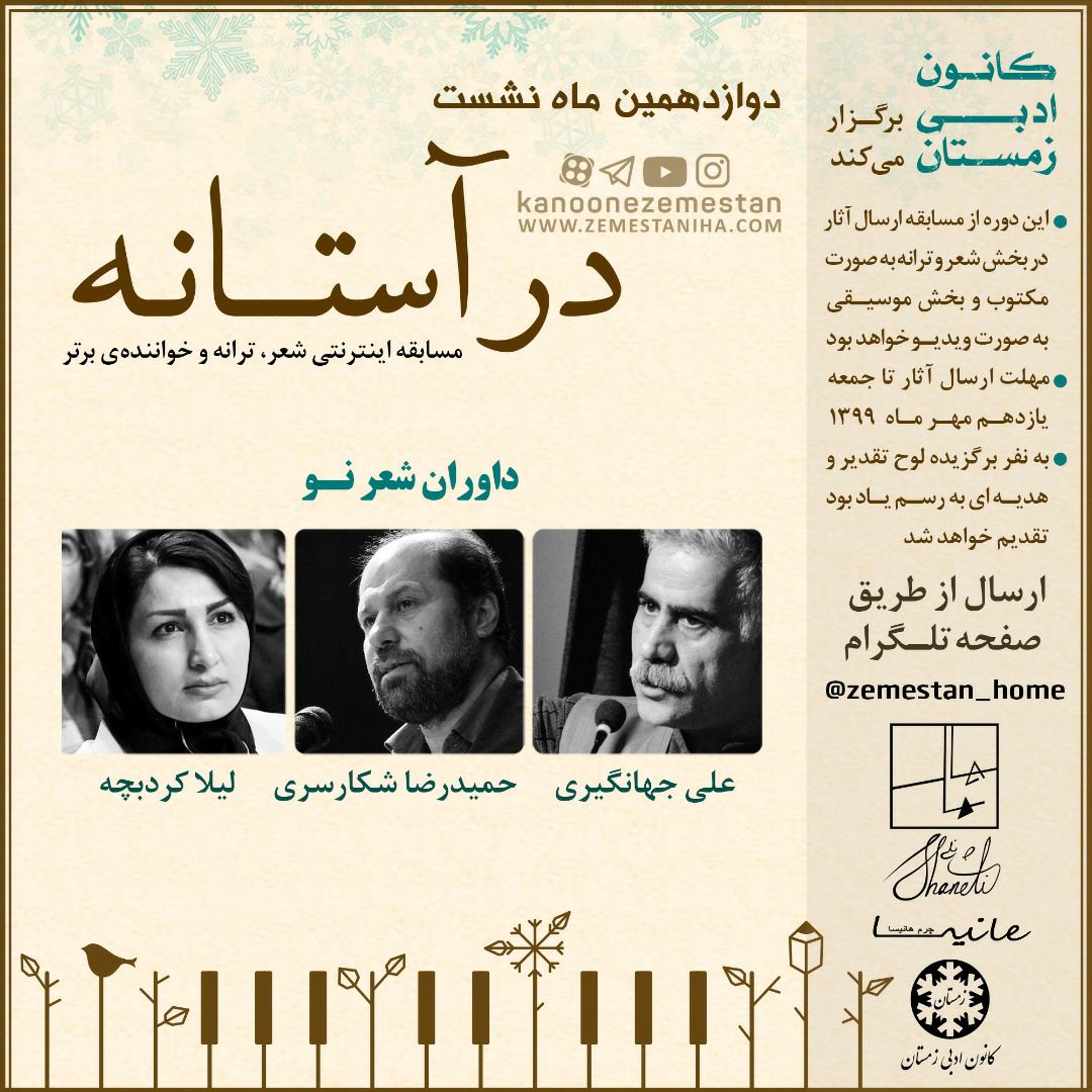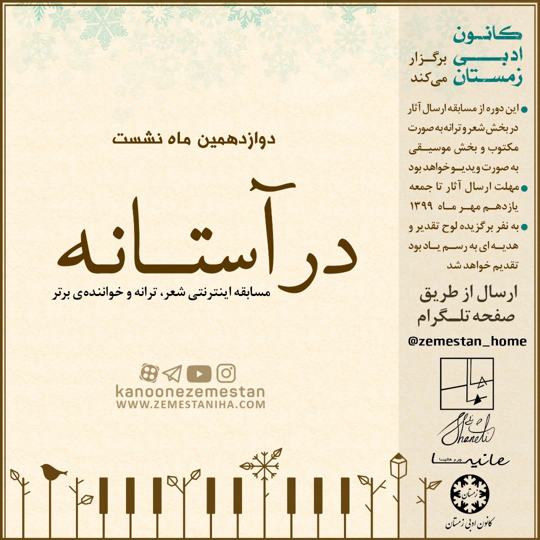 کانون ادبی زمستان برگزار می‌کند: دوازدهمین ماه‌نشست در آستانه
