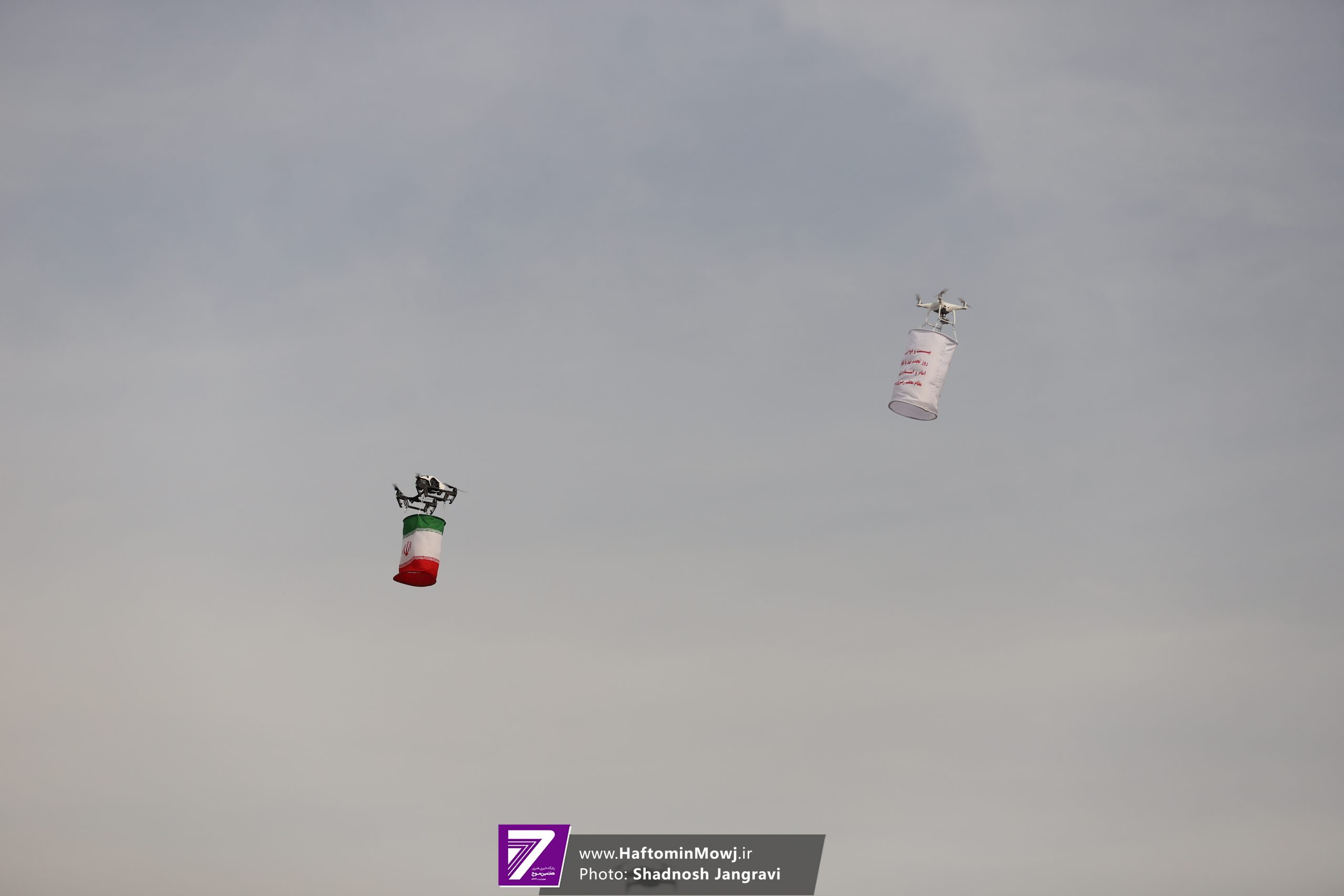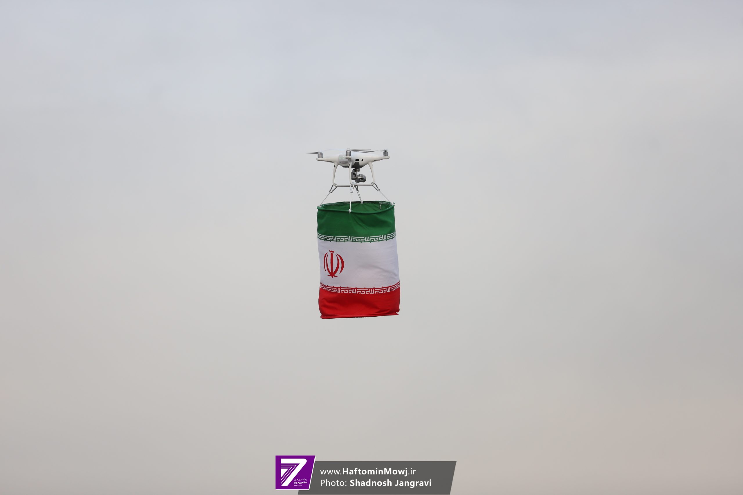 همچنین پرچم مقدس جمهوری اسلامی ایران بوسیله این پهپادها به نشانه غرور ملی، در آسمان پایتخت برافراشته شد.
