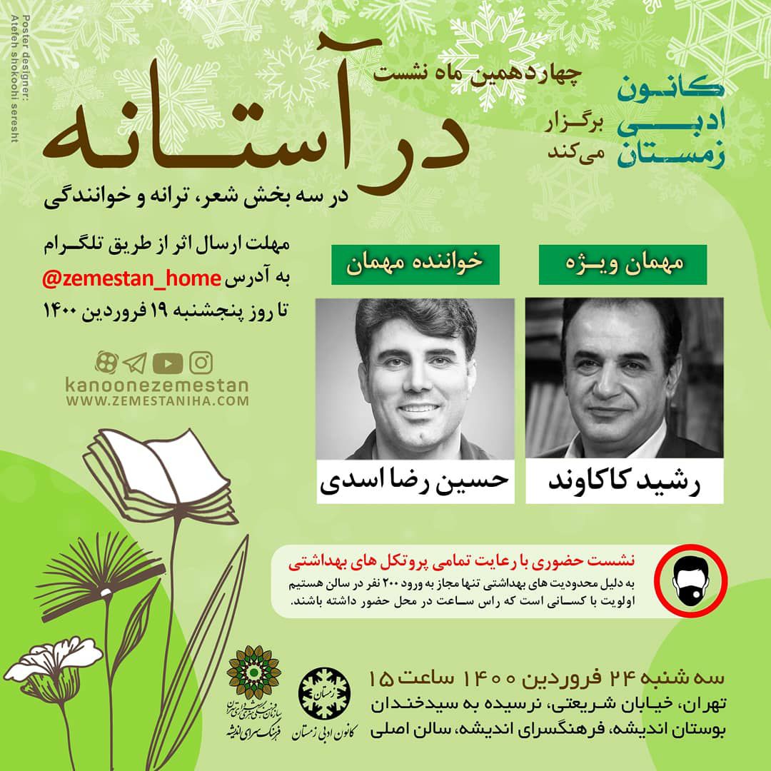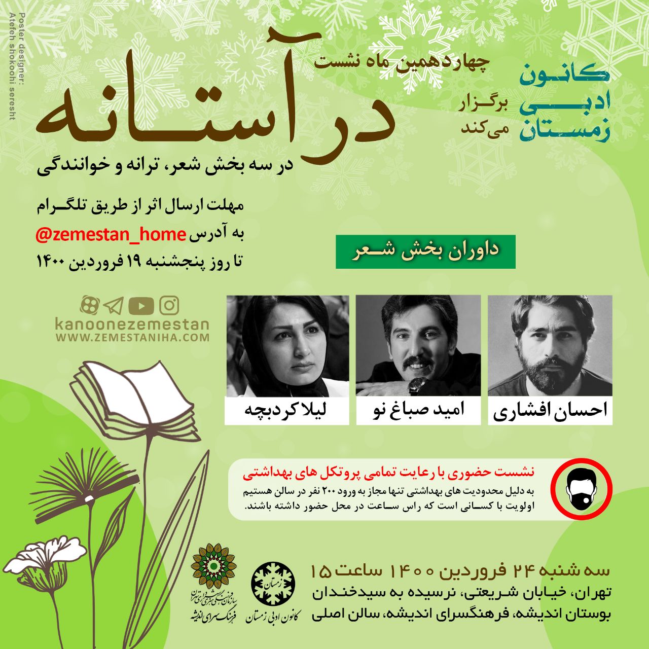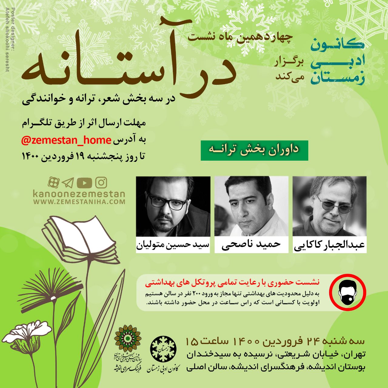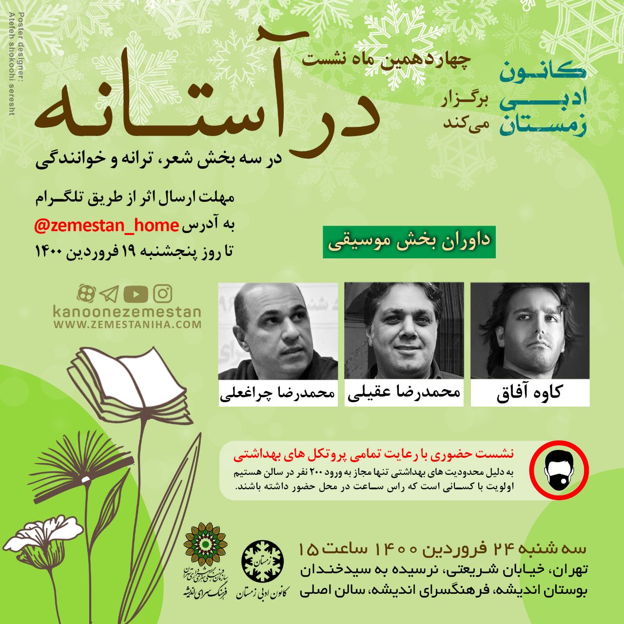 مهلت ارسال اثر از طریق صفحه تلگرام @zemestan_home تا روز پنجشنبه ۱۹ فروردین ۱۴۰۰