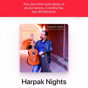 وی با بیان اینکه در اجرای قطعات این آلبوم به موسیقی بزرگان پرداخته و نسبت به آنها و اصالتشان پایبند بوده است، افزود: آلبوم «شبهای هارپاک شامل هشت قطعه با عناوین Asturias version on, cards Monti version on, Roma, Romance, Malaguena, cards Monti Version, Asturias Version two, The Flight of Persian Bumblebee است.